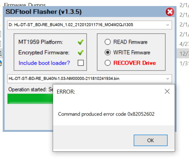 I can't get the drive being flashed and always get the same error as you can see in the attachment.